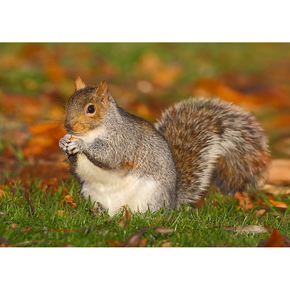 This Common squirrel, predominantly gray, has a large